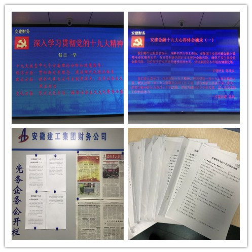 為深入貫徹落實(shí)黨的十九大精神,引領(lǐng)廣大黨員用習(xí)近平新時(shí)代中國(guó)特色社會(huì)主義思想武裝頭腦、指導(dǎo)實(shí)踐、推動(dòng)工作,按照集團(tuán)公司黨委的統(tǒng)一部署,安建財(cái)務(wù)黨總支積極開(kāi)展形式多樣的系列學(xué)習(xí)活動(dòng),通過(guò)公司黨總支中心組學(xué)習(xí)擴(kuò)大會(huì),組織公司中層以上管理人員及各支部委員,專(zhuān)題學(xué)習(xí)黨的十九大精神;公司領(lǐng)導(dǎo)深入所屬各聯(lián)系點(diǎn)開(kāi)展大調(diào)研;組織公司全體黨員瞻仰革命舊址,開(kāi)展“牢記光榮使命,落實(shí)十九大精神”主題黨員活動(dòng)日活動(dòng);帶領(lǐng)安建金融板塊黨務(wù)工作者赴兄弟單位參觀學(xué)習(xí);組織公司全體黨員進(jìn)行黨的十九大知識(shí)測(cè)試和撰寫(xiě)心得;運(yùn)用LED電子屏開(kāi)展黨的十九大“每日一學(xué)”宣傳教育活動(dòng),通過(guò)以上多種形式,積極學(xué)習(xí)宣傳貫徹黨的十九大精神,取得了突出成效,公司廣大黨員干部紛紛表示,要將學(xué)習(xí)宣傳貫徹黨的十九大精神作為當(dāng)前和今后一段時(shí)期的首要政治任務(wù),牢牢把握十九大報(bào)告的主題,深刻領(lǐng)會(huì)習(xí)近平新時(shí)代中國(guó)特色社會(huì)主義思想的重大意義,以黨的十九大精神為指導(dǎo),緊密聯(lián)系工作實(shí)際,以?shī)^發(fā)有為的精神狀態(tài)、求真務(wù)實(shí)的工作作風(fēng)、永不懈怠的創(chuàng)新勇氣,奮力開(kāi)創(chuàng)新時(shí)代安建財(cái)務(wù)發(fā)展新局面。