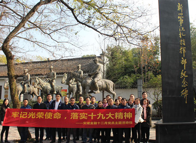 12月7日,安建財(cái)務(wù)黨總支組織開(kāi)展“牢記光榮使命,落實(shí)十九大精神”主題黨員活動(dòng)日活動(dòng),安建財(cái)務(wù)機(jī)關(guān)黨支部、保理黨支部、小貸黨支部的30多名黨員參加了此次活動(dòng)。大家參觀了位于巢湖的新四軍江北指揮部舊址,回顧革命歷程,緬懷革命先烈,接受革命傳統(tǒng)教育。