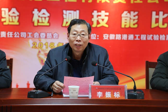 安徽路港公司董事長、總經(jīng)理李振標(biāo)出席開幕式并發(fā)表講話。他指出,此次技能比賽是廣大試驗(yàn)人員展現(xiàn)精神風(fēng)采和技能水平的一個(gè)公平競(jìng)技平臺(tái),是公司試驗(yàn)技術(shù)能力的全方位展現(xiàn),對(duì)加快推進(jìn)公司試驗(yàn)人員隊(duì)伍建設(shè)上臺(tái)階、全面促進(jìn)公司試驗(yàn)工作整體上水平起著重要作用。希望參賽選手嚴(yán)格遵守比賽規(guī)則,賽出風(fēng)格、賽出水平,以扎實(shí)的理論功底、良好的心理素質(zhì)和規(guī)范的操作技術(shù),充分展示安徽路港試驗(yàn)檢測(cè)人員的良好精神風(fēng)貌和精湛技術(shù)水平。