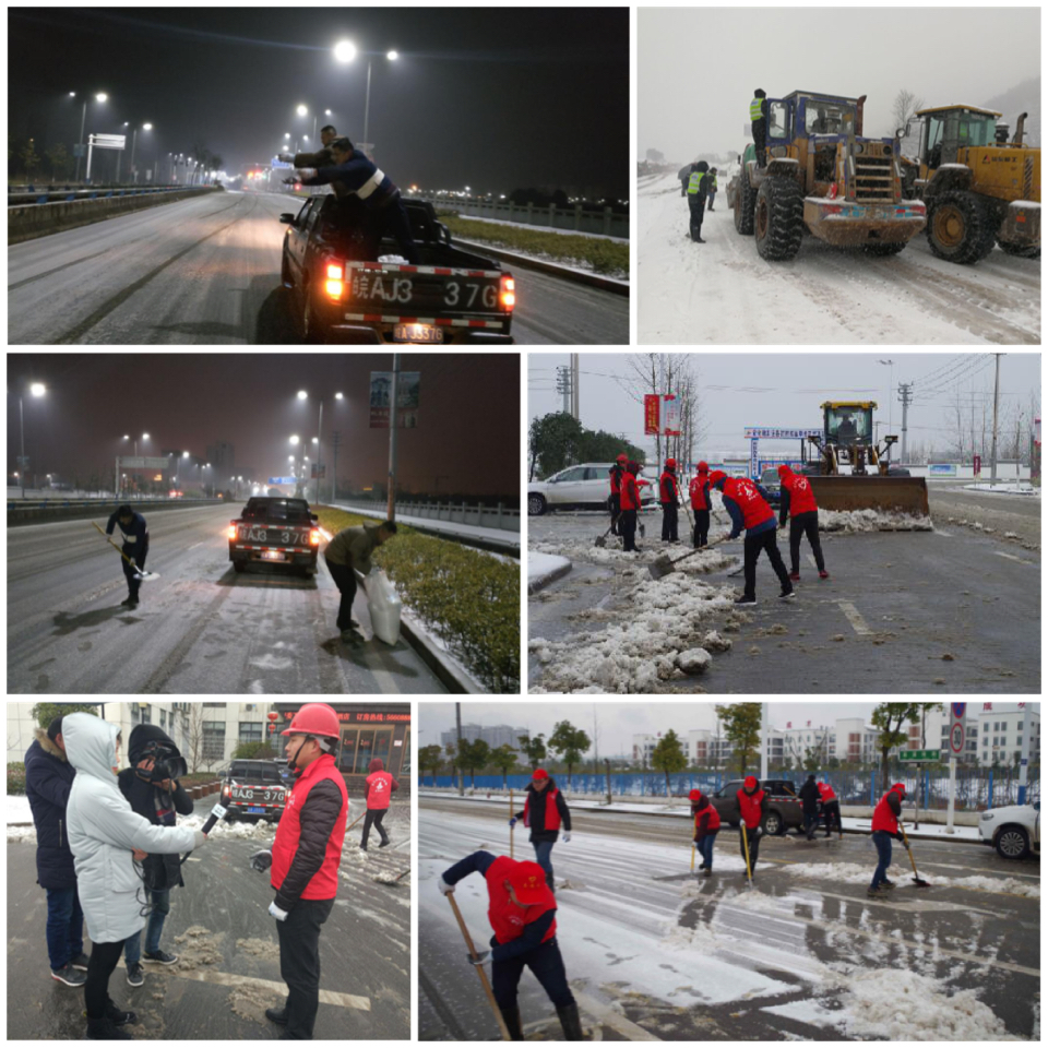 24日夜,工管部各項(xiàng)目徹夜通明,負(fù)責(zé)人帶頭堅(jiān)守辦公室值班,全體管理人員24小時開機(jī)嚴(yán)陣以待。施工道路上,項(xiàng)目管理人員跟隨調(diào)配車輛沿路潑灑工業(yè)鹽及融雪劑,防止夜間道路結(jié)冰。25日清晨,工管部調(diào)配鏟車,組織青年志愿者隊(duì)伍,帶著掃雪鏟等工具,來到?jīng)芸h城區(qū)道路清掃積雪,方便來往車輛和行人通行。涇縣電視臺記者聞訊趕到現(xiàn)場,對工管部義務(wù)清掃道路積雪進(jìn)行了采訪。