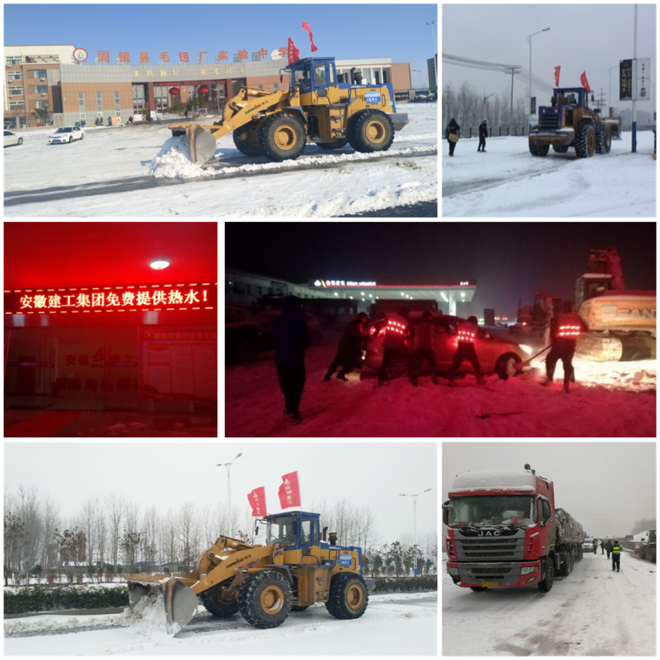 25日,舒城第二工管部也早早做好應(yīng)急準(zhǔn)備,組織工管部全體管理人員及班組,維護(hù)好道路通行秩序,動用大型設(shè)備,沿縣城干道鏟雪除冰。項(xiàng)目部全體人員以雪為令,邊下邊清,雪停路凈,為縣城居民出行掃出一條安全通道。項(xiàng)目部后勤保障部門保障熱水供應(yīng),義務(wù)推車為沿線車輛司機(jī)行人免費(fèi)提供便利。