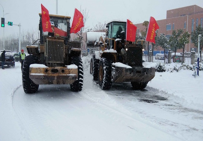 雨雪無情人有情,安徽路橋集團在本次暴雪期間累計調動機械設備100余臺(輛),出動人員500余人,義務參與項目所在地的鏟雪除冰工作,保證了車輛的通行及行人的安全。各項目員工清掃積雪的場景為江淮大地增添一抹亮色,天寒地凍卻如一股溫流溫暖著行人,也彰顯出安徽路橋集團負責任的國企形象。