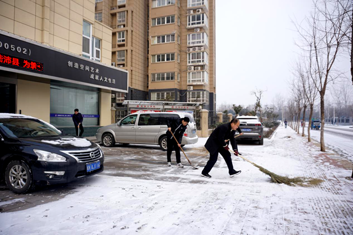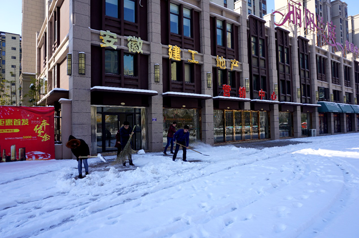 1月25日至27日,安建地產(chǎn)同興公司負(fù)責(zé)人帶領(lǐng)公司職工鏟雪除冰,給安建地產(chǎn)·錦繡花園小區(qū)居民業(yè)主提供一個(gè)安全的出行環(huán)境。