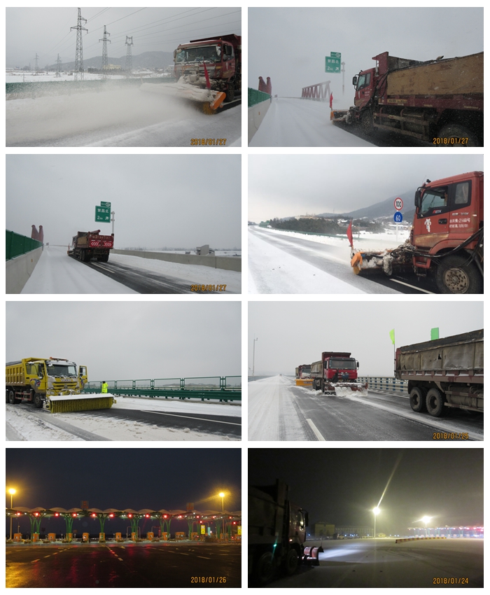 為確保高速公路的暢通,濟(jì)祁高速養(yǎng)護(hù)項(xiàng)目部和蕪湖二橋養(yǎng)護(hù)項(xiàng)目部第一時(shí)間啟動(dòng)除雪除冰應(yīng)急處置預(yù)案,安排鏟雪車鏟除路面積冰,融雪車拋灑融雪劑,養(yǎng)護(hù)人員利用鐵鍬掃帚再反復(fù)清掃。重點(diǎn)加強(qiáng)對(duì)高速公路彎道、橋梁、收費(fèi)站出入口等路段的除雪保暢力度。此外在除雪作業(yè)現(xiàn)場(chǎng)還安排了專人指揮疏導(dǎo)交通,加大高速公路安全巡查力度,確保了降雪天氣行車安全。