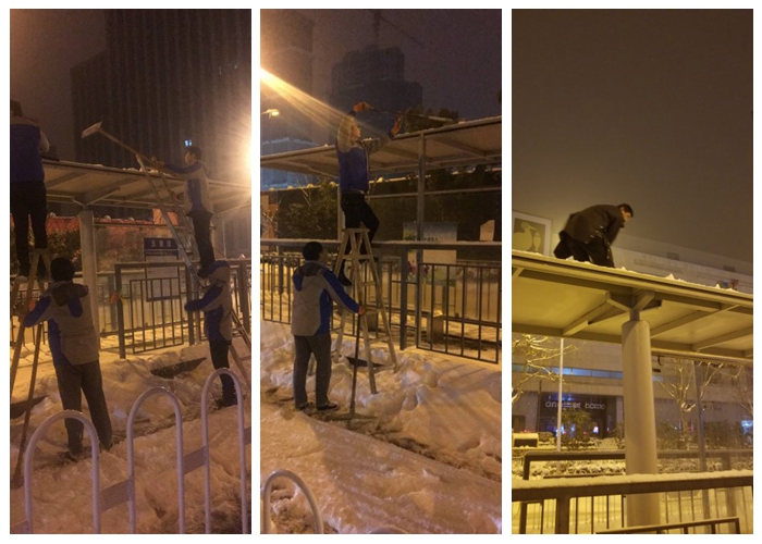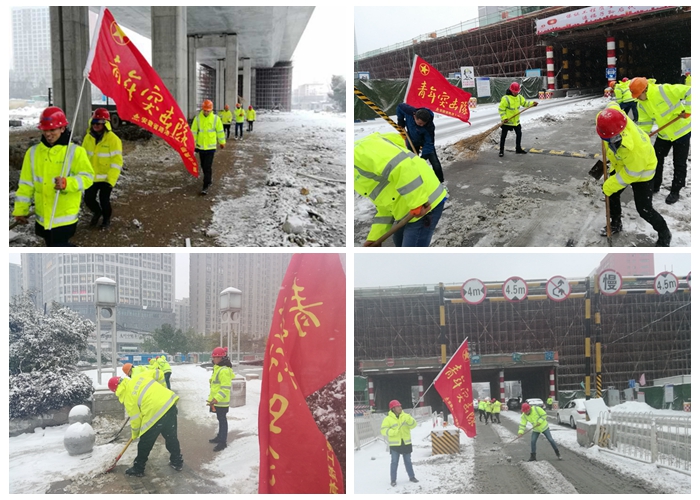 蕪湖中山橋項(xiàng)目部組織全體職工對(duì)項(xiàng)目駐地附近周邊小區(qū)進(jìn)出道路、商戶門口及工地即將施工區(qū)域進(jìn)行除雪作業(yè)。