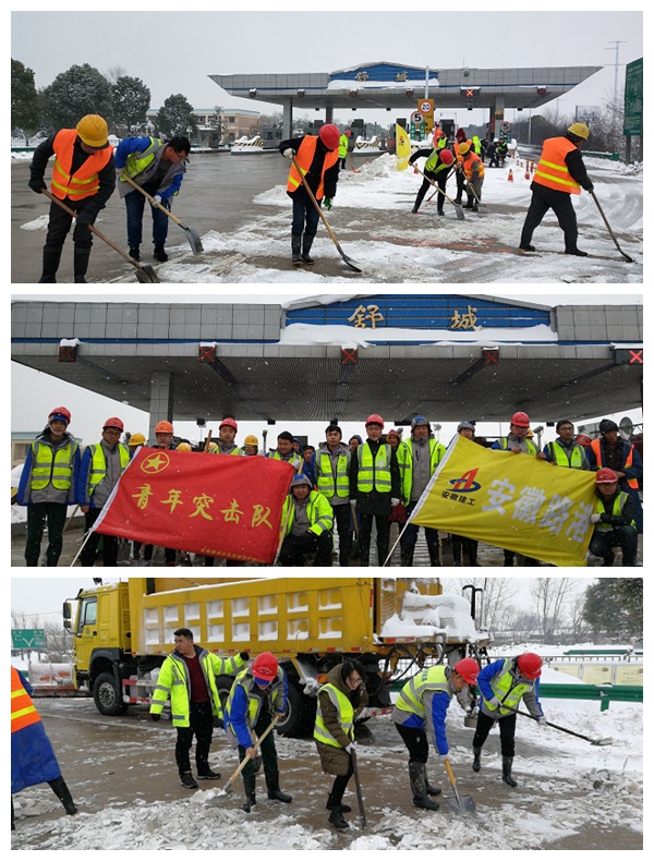 為保證道路通行及人民群眾出行安全,合安改擴(kuò)建02標(biāo)項(xiàng)目部領(lǐng)導(dǎo)班子帶領(lǐng)項(xiàng)目部職工及班組人員,配合合安管理處對(duì)舒城收費(fèi)站廣場(chǎng)進(jìn)行鏟雪除冰。