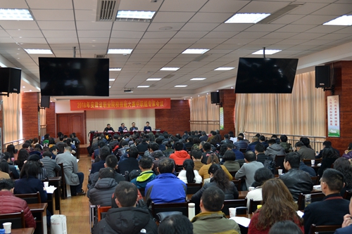 3月9日上午,2018年安徽省職業(yè)院校技能大賽中職組專家會(huì)議在安徽建工技師學(xué)院行政樓六樓會(huì)議室召開,省教育廳職成處副處長(zhǎng)陳鋒、省人社廳職業(yè)資格鑒定中心副主任馬軍、省教育廳評(píng)估中心副主任武慶鴻、安徽建工技師學(xué)院黨委書記、院長(zhǎng)張衛(wèi)東等領(lǐng)導(dǎo)出席會(huì)議,全體裁判員、巡視員、監(jiān)督員及全省16個(gè)賽點(diǎn)學(xué)校領(lǐng)隊(duì)工作人員共計(jì)200余人參會(huì)。會(huì)議由省教育廳職成處副處長(zhǎng)陳鋒主持。