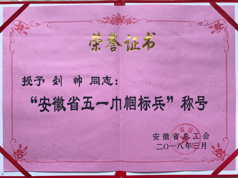 2018年3月9日,省建設(shè)建材工會(huì)副主任葉雪清為我公司劉帥同志頒發(fā)“安徽省五一巾幗標(biāo)兵崗”榮譽(yù)證書(shū)。劉帥同志憑借優(yōu)秀的工作表現(xiàn)和正能量的生活態(tài)度,被公司工會(huì)推舉參選,并最終榮獲“安徽省五一巾幗標(biāo)兵”榮譽(yù)稱號(hào)。這既是個(gè)人的榮譽(yù),也是全公司的榮譽(yù)。