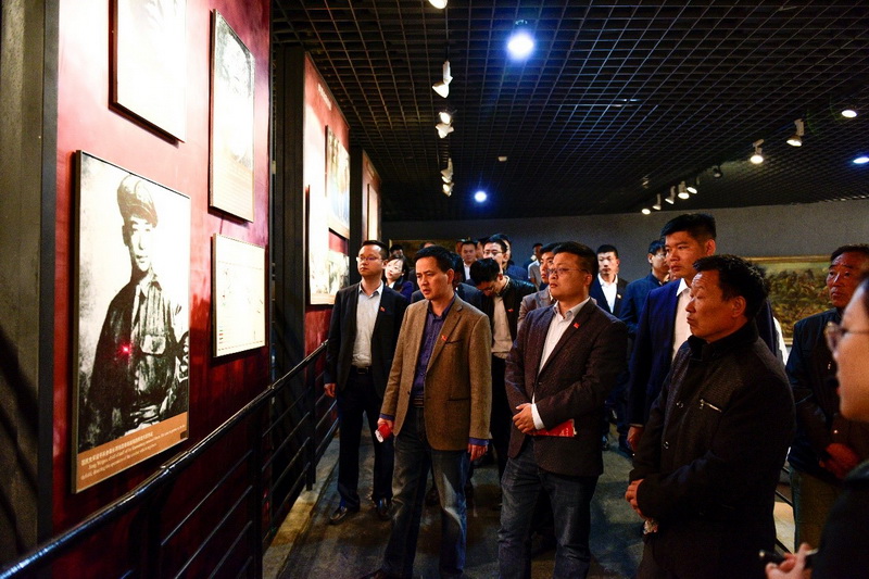 在淮海戰(zhàn)役紀(jì)念館內(nèi),大家對淮海戰(zhàn)役總體情況進行了詳細了解。參觀過程中,根據(jù)戰(zhàn)役三個階段的決策部署和執(zhí)行情況,認(rèn)真分析了兵力、裝備、民心等方面資源情況,大家通過熱烈討論,一致認(rèn)為中國共產(chǎn)黨的統(tǒng)一領(lǐng)導(dǎo)和軍民團結(jié)是淮海戰(zhàn)役的制勝法寶,撫今追昔,中國人民解放軍的英雄氣概仍歷歷在目,深切地感受到人民戰(zhàn)爭的偉大!在淮海戰(zhàn)役總前委群雕前,全體黨員深切緬懷劉伯承、陳毅、鄧小平、粟裕、譚震林5位革命先烈。在余志剛的帶領(lǐng)下,全體黨員舉起右拳,以堅定有力的聲音重溫了入黨誓詞。錚錚誓言久久回蕩,表達了大家不忘初心、牢記使命的堅定政治信念,為黨和國家事業(yè)矢志不渝、奮斗終身的決心。