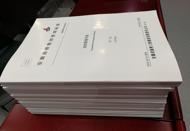 安徽路橋集團(tuán)標(biāo)準(zhǔn)化管理體系以規(guī)范管理為中心,堅(jiān)持專業(yè)化管理,堅(jiān)持經(jīng)理責(zé)任制,做到組織標(biāo)準(zhǔn)化、流程標(biāo)準(zhǔn)化、表單標(biāo)準(zhǔn)化。整個(gè)管理體系包括“制度、辦法、手冊”三個(gè)層級,涵蓋從公司總部到項(xiàng)目部各層面。下一步,公司會把標(biāo)準(zhǔn)化成果運(yùn)用到信息化建中,通過信息化固化流程、表單,在運(yùn)行過程中不斷優(yōu)化管理體系。