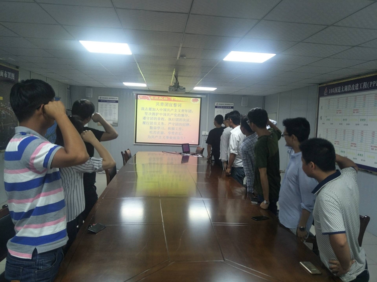 105國道太湖段項目團支部組織團員青年召開座談會,重溫入團誓詞,會后組織觀看電影《厲害了,我的國》