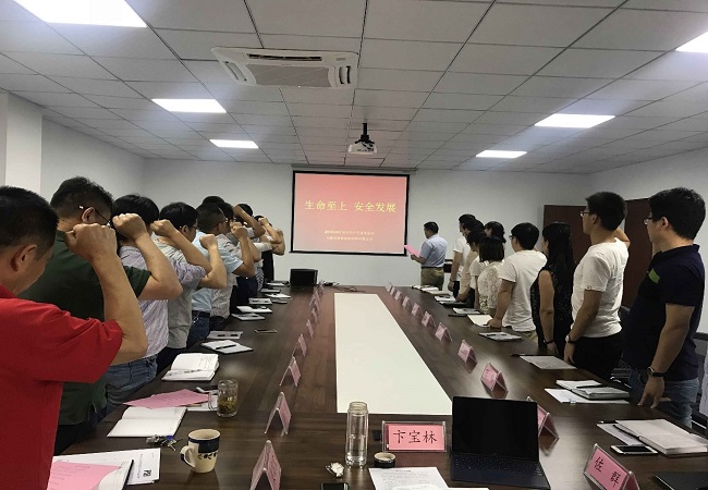 公司副總經(jīng)理錢葉琳帶領(lǐng)全體參會人員開展安全生產(chǎn)月安全宣誓