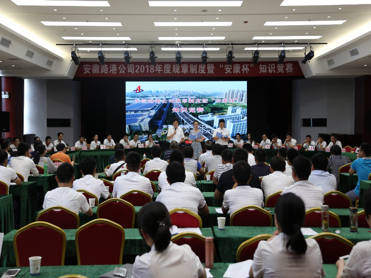 6月26日下午,安徽路港公司2018年度規(guī)章制度暨“安康杯”知識競賽在安建大廈3樓會(huì)議室舉行,共有來自公司機(jī)關(guān)、司屬各單位的25支參賽隊(duì)伍、75名選手參加比賽,集團(tuán)公司工會(huì)副主席、職工監(jiān)事吳曉伍,安徽路港公司董事長、總經(jīng)理李振標(biāo),副總經(jīng)理袁民出席活動(dòng)。
