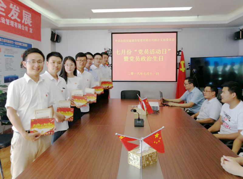 為紀念建黨97周年,7月11日下午,中共阜陽安建建設管理有限公司聯(lián)合支部開展7月份“黨員活動日”,并為黨員過集體政治生日。