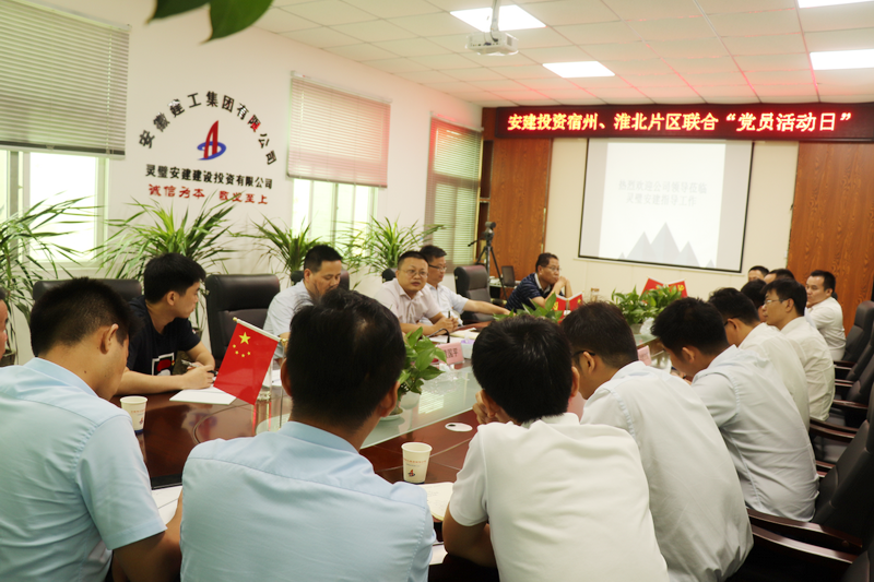 7月11日下午,由安建投資公司與安徽路橋集團共同組建的中共靈璧安建建設投資有限公司聯(lián)合黨支部舉行揭牌儀式。安建投資黨總支書記余志剛,副總經理黃國平、朱友良,安徽路橋集團工會主席、紀委書記王勝利共同為聯(lián)合支部揭牌并舉行黨建工作座談,安建投資淮北中湖及S101項目部分黨務工作者參加座談會。