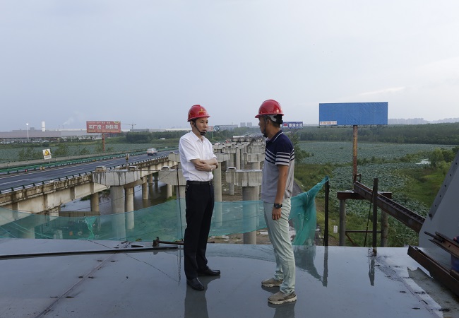 隨后,在項目負責(zé)人的陪同下,盛董事長登上中派河大橋,查看大橋建設(shè)情況。項目負責(zé)人匯報了中派河大橋當(dāng)前工程進度、質(zhì)量、安全管理、技術(shù)創(chuàng)新以及下一階段工作計劃。在聽取匯報后,盛董事長表示,中派河大橋使用了大量新工藝、新技術(shù)、新材料,社會影響力大,各界關(guān)注度高,項目部一定要緊抓質(zhì)量、安全不放松,同時注重技術(shù)創(chuàng)新、經(jīng)驗總結(jié)、綠色環(huán)保,把中派河大橋打造成為行業(yè)內(nèi)的精品工程,內(nèi)強素質(zhì)、外樹品牌,為路橋集團增光添彩。