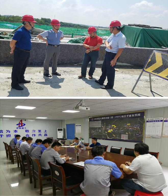 8月21日,安徽路港公司總經(jīng)理、黨委副書(shū)記葉明林在副總經(jīng)理錢玉寶和工程部負(fù)責(zé)人陪同下,來(lái)到G105國(guó)道太湖段改建工程PPP項(xiàng)目部檢查指導(dǎo)工作。