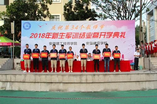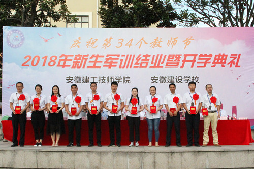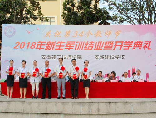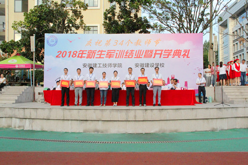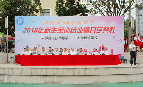 9月7日下午,安徽建工技師學(xué)院隆重舉行慶祝第34個(gè)教師節(jié)、2018級(jí)新生軍訓(xùn)結(jié)業(yè)暨開(kāi)學(xué)典禮在田徑運(yùn)動(dòng)場(chǎng)隆重舉行。安徽省住建廳副巡視員劉少為,安徽建工集團(tuán)黨委副書(shū)記牛曙東,原安徽省人社廳副廳長(zhǎng)、現(xiàn)安徽省職業(yè)技術(shù)培訓(xùn)協(xié)會(huì)常務(wù)副會(huì)長(zhǎng)劉光明,安徽省人社廳職業(yè)能力建設(shè)處處長(zhǎng)劉曉燕,安徽省住建廳工會(huì)主任陳立新,安徽省建設(shè)干部學(xué)校校長(zhǎng)、安徽省住建廳執(zhí)業(yè)資格注冊(cè)中心主任楊博,安徽省住建廳服務(wù)中心主任劉家祥,安徽建工集團(tuán)黨委工作部主任徐文聯(lián),合肥市人社局職業(yè)能力建設(shè)處處長(zhǎng)束志偉,安徽建工集團(tuán)黨委工作部副主任、團(tuán)委書(shū)記王詩(shī)旵等領(lǐng)導(dǎo)及校企合作單位代表安徽南巽建設(shè)項(xiàng)目管理投資有限公司董事長(zhǎng)張訓(xùn)年、長(zhǎng)虹美菱股份有限公司工會(huì)主席張小林、華拓金服科技有限公司人事副總監(jiān)張友方、海爾集團(tuán)華東區(qū)人事經(jīng)理夏芹、安徽芯瑞達(dá)科技股份有限公司人力資源部經(jīng)理朱磊、深圳市龍贏天集團(tuán)院校合作部安徽區(qū)域經(jīng)理耿仁龍等嘉賓出席典禮并在主席臺(tái)就座,院領(lǐng)導(dǎo)張衛(wèi)東、任建設(shè)、吳良照、周元清、呂良玉,全體教職工、全體新生、學(xué)生家長(zhǎng)代表以及安徽商報(bào)、新安晚報(bào)、合肥晚報(bào)、中安在線等新聞媒體屆的朋友參加典禮。副院長(zhǎng)任建設(shè)主持儀式。