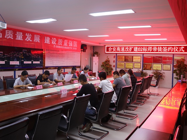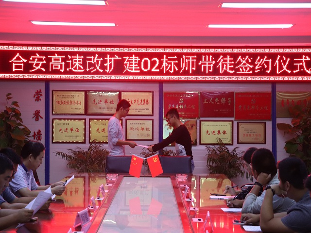 合安高速改擴建02標項目部經(jīng)過認真商討,仔細選拔,最終確定了經(jīng)驗豐富,品德優(yōu)良,技能水平高的5位導(dǎo)師,與新分配的5位新員工結(jié)成師徒并簽訂了 《導(dǎo)師帶徒協(xié)議》。項目總工對項目建設(shè)現(xiàn)狀進行深入分析,讓新員工對所處的環(huán)境有了直觀清晰地認識。5位師傅對各自的徒弟提出了學(xué)習、工作和生活上的要求,徒弟也一一表態(tài),會在師傅的引導(dǎo)下認真鉆研,刻苦學(xué)習,努力完成師傅定的目標,進一步提升自己的業(yè)務(wù)素質(zhì)和綜合能力。