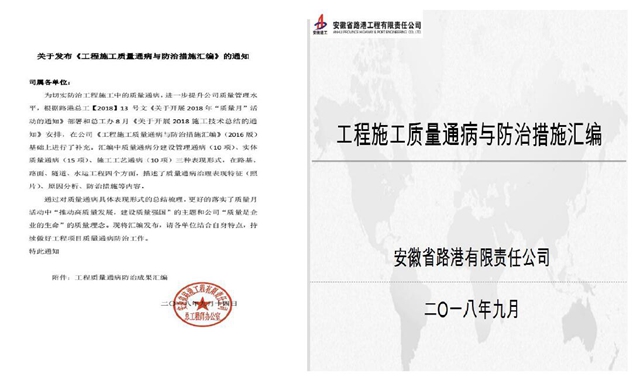 2018年9月,根據(jù)集團公司工管部開展“質(zhì)量月”活動的通知要求,安徽路港公司廣泛動員、周密部署,扎實開展2018年“質(zhì)量月”活動,夯實質(zhì)量管理基礎(chǔ),構(gòu)建高效的風(fēng)險防控機制,顯著提升工程和服務(wù)質(zhì)量,打造高質(zhì)量發(fā)展的新引擎,為企業(yè)持續(xù)健康發(fā)展保駕護航。