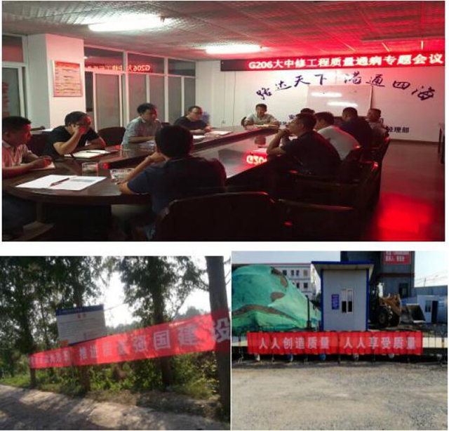 G206路面大中修項目部:根據(jù)工程特點,開展專題治理。項目部針對自身工程特點,在活動期間完善質(zhì)量自檢體系和自檢程序,加強易產(chǎn)生質(zhì)量通病的部位和工序的預(yù)控工作,有效將質(zhì)量通病隱患消滅在施工過程中,達到“質(zhì)量優(yōu)、投資省、安全好、效益高”的工藝控制目標,進一步提高公路工程施工工藝,克服實體通病,努力爭創(chuàng)優(yōu)質(zhì)、打造精品。