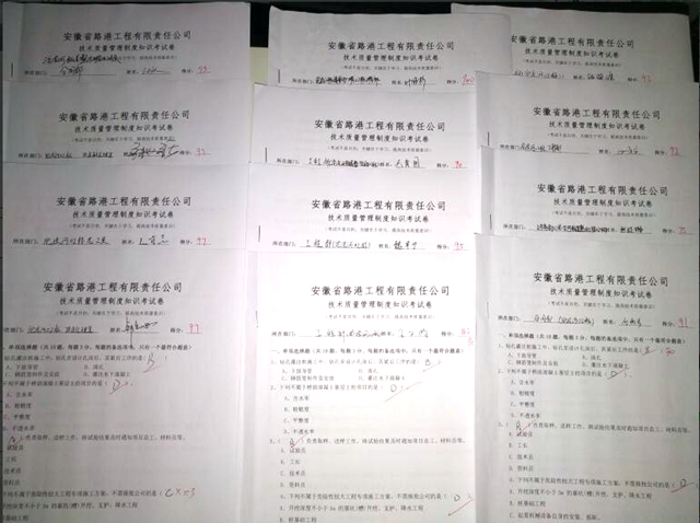 二是全面以考促學(xué),提高質(zhì)量意識。公司總工辦統(tǒng)一組織命題,各項目部總工負責(zé)實施技術(shù)質(zhì)量管理制度知識閉卷考試,共計31個項目、452名技術(shù)質(zhì)量管理人員參加考試,通過查漏補缺,提高全員技術(shù)質(zhì)量意識。