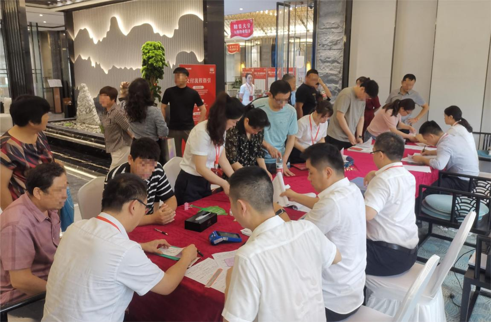 現(xiàn)場設(shè)置了資料核驗(yàn)、地產(chǎn)業(yè)務(wù)、物業(yè)服務(wù)、驗(yàn)房服務(wù)、鑰匙領(lǐng)取等服務(wù)區(qū),交房流程井然有序,工作人員耐心為業(yè)主們辦理交房手續(xù)。同時(shí),定遠(yuǎn)公司積極踐行“交房即辦證”,開通綠色辦證通道,以國企的高度責(zé)任感和硬核實(shí)力,實(shí)現(xiàn)交房和交證之間零時(shí)差、零等待,為交付時(shí)刻疊加幸福。
