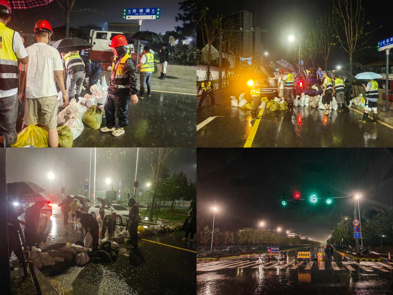 7月1日,夜間9點15分,在接到肥西縣暴雨預警信號后,淮桐03標項目、文忠路項目第一時間趕赴金寨南路02標項目參與搶險救災。所屬項目黨支部黨員沖鋒在前,身披雨衣,在暴雨中裝填沙袋、抽排積水、疏導交通,極力維護現(xiàn)場安全。在搶險過程中,項目嚴格執(zhí)行24小時應急值班和領(lǐng)導帶班制度,深入項目低洼地帶等隱患點開展巡查排查,對所有易澇點定崗、定人值守,實時監(jiān)控積水情況,將暴雨帶來的損失降到最低。經(jīng)過10個小時奮戰(zhàn),在各方全力協(xié)調(diào)支持配合下,金寨南路項目積水均已清理完畢,為廣大市民安全出行提供了保障。