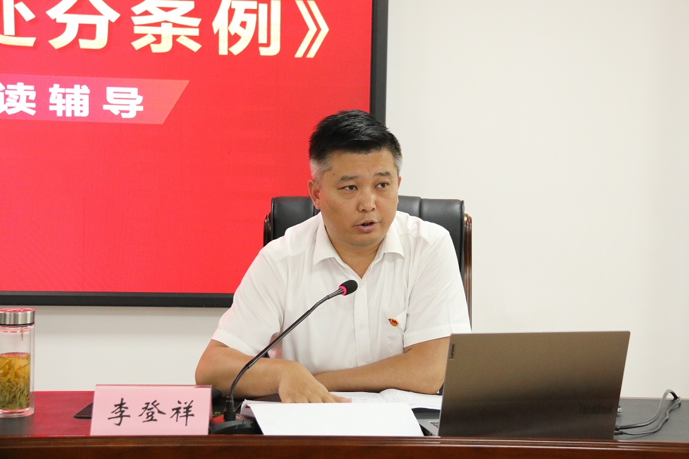 李登祥指出,一要堅(jiān)持學(xué)紀(jì)為先,擰緊思想總開關(guān),將學(xué)紀(jì)作為知紀(jì)、明紀(jì)的基礎(chǔ)和前提,逐條逐句深學(xué)細(xì)悟,在常學(xué)常新中把好廉潔自律思想“總開關(guān)”。二要知紀(jì)于心,把準(zhǔn)“六大紀(jì)律”,深刻把握黨的政治紀(jì)律、組織紀(jì)律、廉潔紀(jì)律、群眾紀(jì)律、工作紀(jì)律和生活紀(jì)律的主旨要義和實(shí)踐要求,明確日常言行的衡量標(biāo)尺,常緊紀(jì)律之弦。三要守紀(jì)篤行,做到忠誠干凈擔(dān)當(dāng)。在學(xué)習(xí)和掌握紀(jì)律上求實(shí)效、在維護(hù)和遵守紀(jì)律上見行動,切實(shí)把自己擺進(jìn)去、把工作擺進(jìn)去、把職責(zé)擺進(jìn)去,牢牢守住紀(jì)律底線,永葆清正廉潔政治本色。
