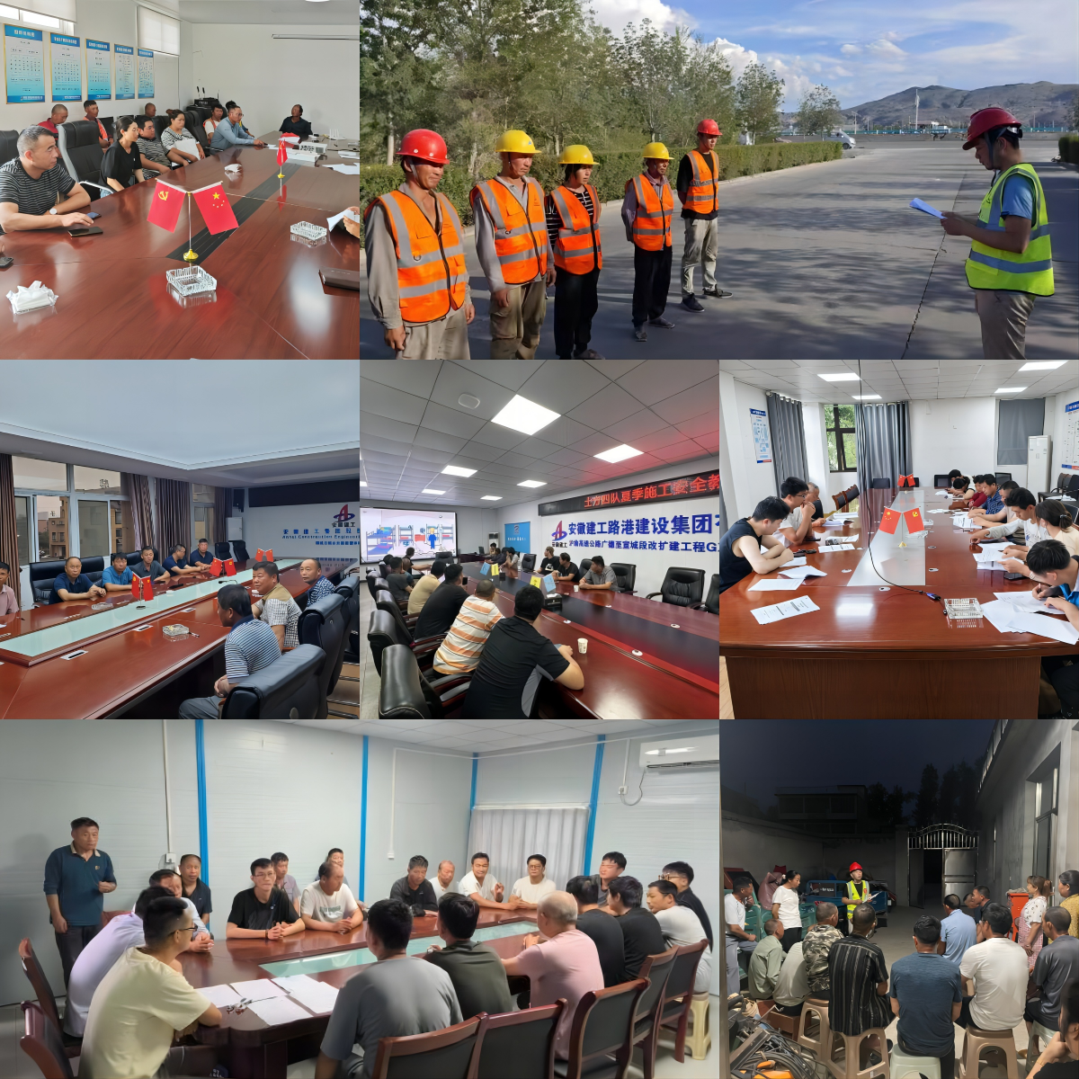 所屬各分子公司、項目部第一時間召開會議,傳達集團、公司會議精神,并圍繞施工現(xiàn)場環(huán)境保護“六個百分百”、消防設(shè)施、基坑、有限空間作業(yè)、高處作業(yè)、臨時用電、吊裝作業(yè)、場內(nèi)車輛管理、特種作業(yè)人員持證上崗、夏季高溫施工、汛期施工防范措施以及其他可能存在的安全隱患和薄弱環(huán)節(jié)開展自查,同時全面加強班組安全教育和安全交底,確保項目建設(shè)安全無死角。