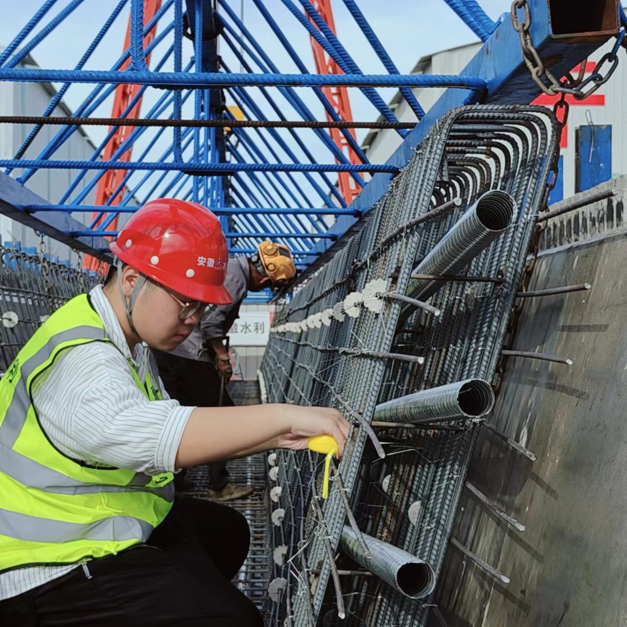 “我是2024年3月12日到淮桐項(xiàng)目部的,面對(duì)新工作、新生活,心里有說不出的滋味,有對(duì)新工作的期盼,也有到新環(huán)境的緊張。初到項(xiàng)目部就有著崗位的變動(dòng),我一開始是比較茫然的?!睆埿り栒勂鹚麆?cè)肼毣赐╉?xiàng)目部的情況,剛?cè)肼殨r(shí)他就從測(cè)量崗轉(zhuǎn)到質(zhì)檢崗,從測(cè)量放樣到質(zhì)量管控,工作內(nèi)容變化大,“測(cè)量崗主要是針對(duì)施工圖紙,更多的是與儀器打交道。而質(zhì)檢崗包含領(lǐng)域更多,從原材料進(jìn)場(chǎng)到加工、運(yùn)輸、成品都需要管控?!?/span>