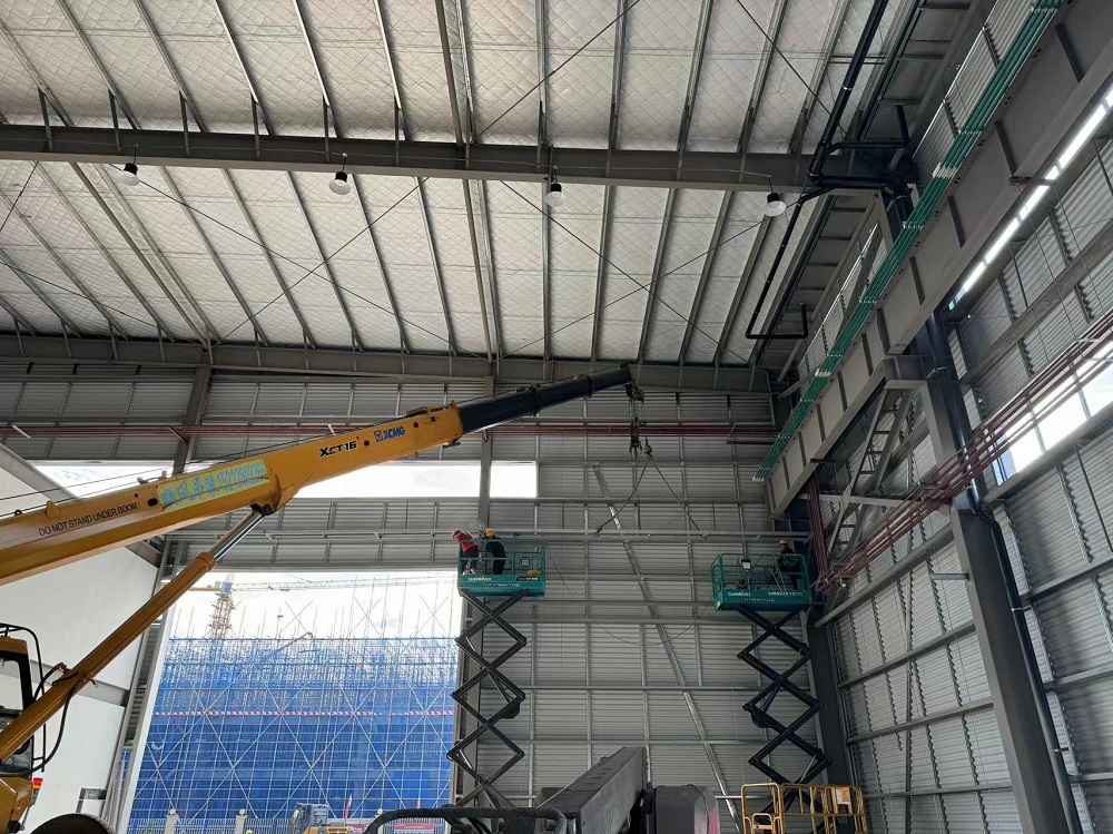 目前項(xiàng)目施工現(xiàn)場100多名工人各司其職,進(jìn)行2#重鋼車間廠房橋架、消防系統(tǒng)、氣體管道、裝修、圍護(hù)結(jié)構(gòu)、門窗、通風(fēng)氣樓、設(shè)備基礎(chǔ)等安裝。同時(shí)為應(yīng)對(duì)持續(xù)高溫天氣,項(xiàng)目部合理安排作業(yè)時(shí)間,做好后勤保障工作,現(xiàn)場不間斷巡查時(shí)刻關(guān)注工人狀態(tài),在確保施工人員健康和安全的前提下,全力以赴加快廠房項(xiàng)目建設(shè)進(jìn)度,預(yù)計(jì)7月26日前完成大部分項(xiàng)目內(nèi)容的施工任務(wù)。