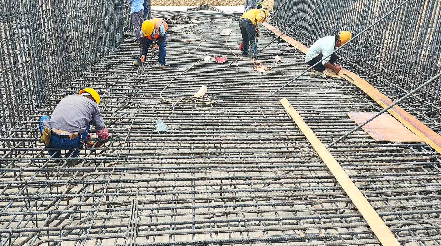 ▲宿州泗縣綠色產(chǎn)業(yè)園項目-濉河路雙孔箱涵底板鋼筋焊接及綁扎