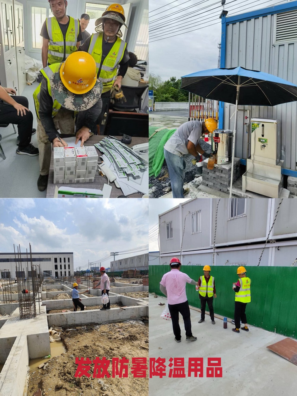為應(yīng)對高溫天氣,項(xiàng)目部多措并舉,每日供應(yīng)冰水,加量供應(yīng)防暑降溫物資并合理調(diào)整作息時(shí)間,從而保障施工人員在高溫天氣作業(yè)安全,在這炎炎烈日下給工人師傅們送去一絲清涼。