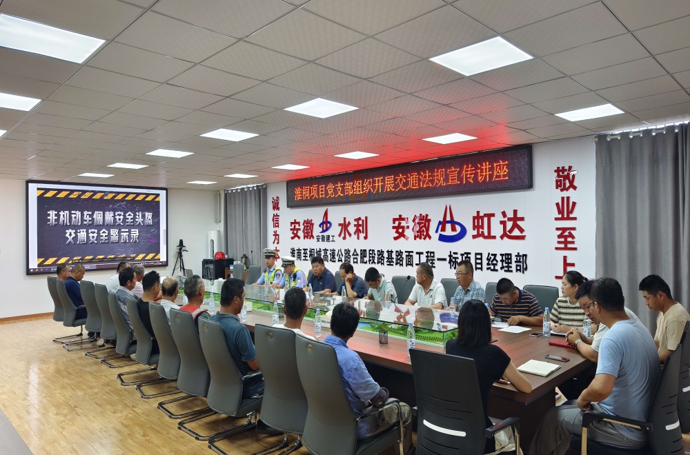 為切實做好施工道路交通安全管理工作,進一步加強對項目部及施工班組駕駛?cè)说男麄骶玖Χ龋行ьA(yù)防交通事故的發(fā)生,7月28日,安徽水利淮桐項目黨支部特邀合肥市公安局交警支隊經(jīng)開區(qū)高劉中隊中隊長徐磊同志在項目開展警示教育活動。