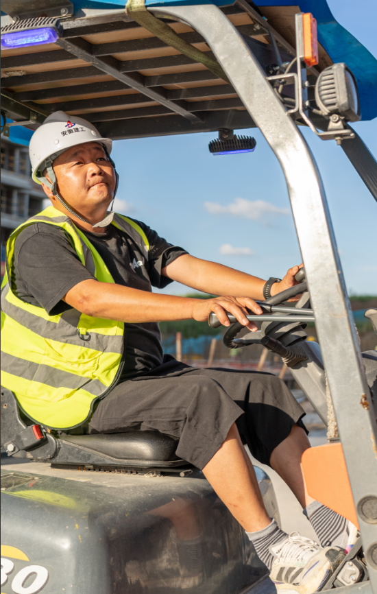 駕駛著叉車的張智,正忙著進(jìn)行磚塊的搬運(yùn)和裝卸工作。面色堅定,汗水從額頭上流下,但他絲毫沒有懈怠,始終保持著專注與嚴(yán)謹(jǐn)?shù)膽B(tài)度,確保每一項任務(wù)的安全與高效完成。