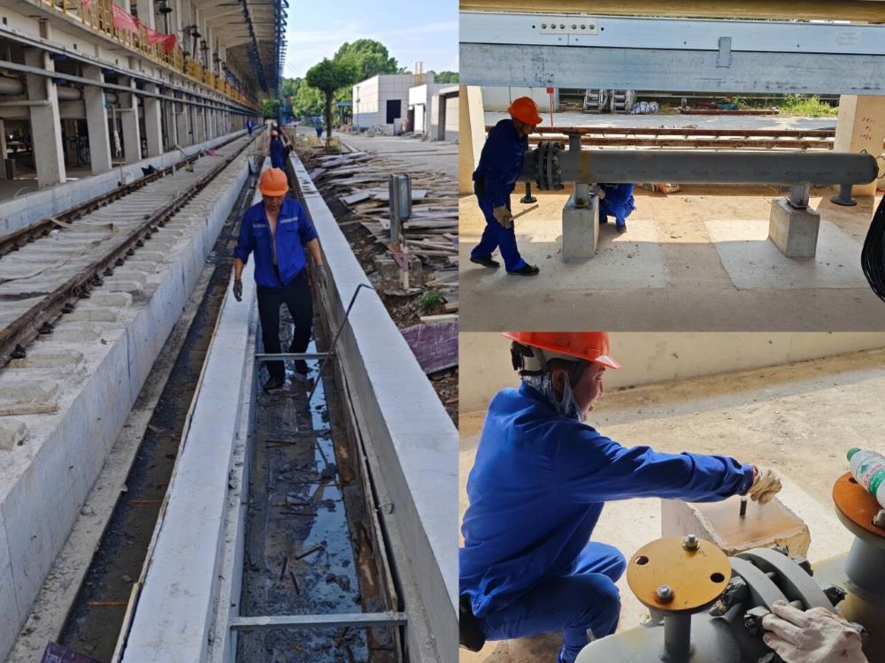 安慶石化新增鐵路接卸純苯設(shè)施項目,土建項目已基本完工,現(xiàn)剩余整體道床排水溝和兩側(cè)回填混凝體澆筑、控制室內(nèi)裝飾裝修等工作;設(shè)備安裝部分完成安裝六臺換熱器、六臺鶴管,預(yù)計九月底完工。圖為道床混凝土澆筑和換熱器安裝。