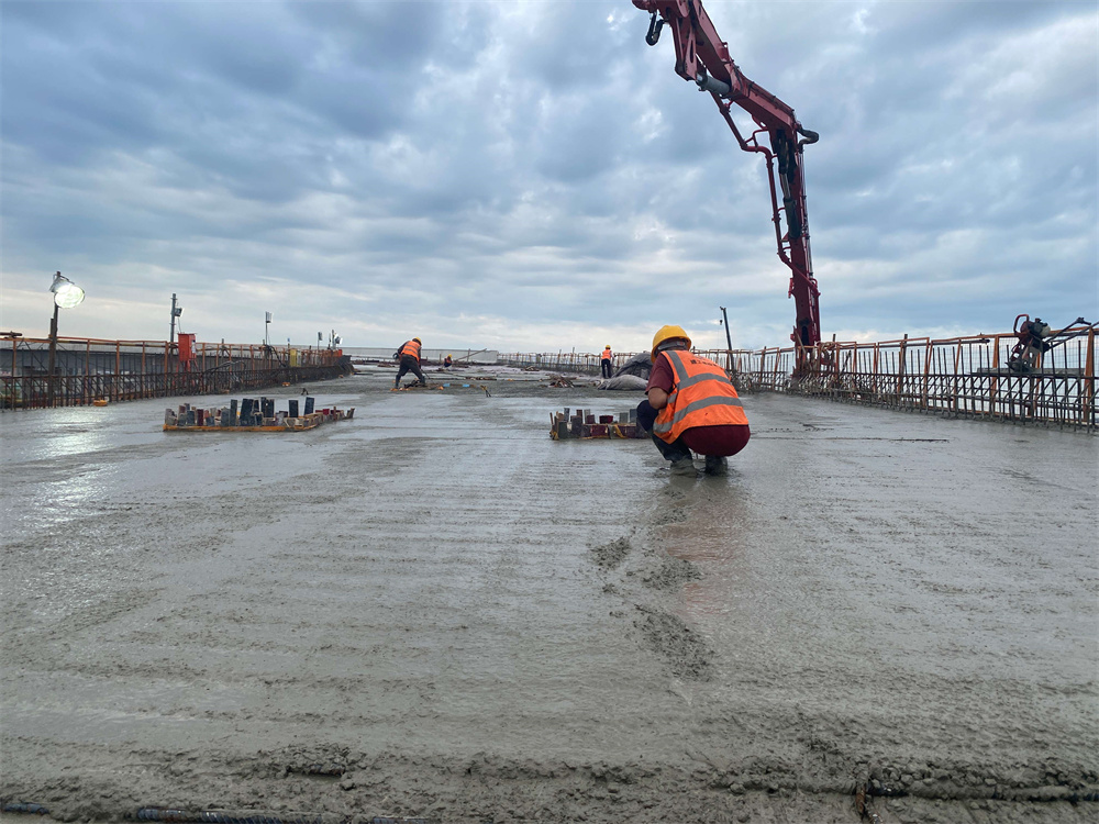 驕陽似火,在五蒙高速05標項目包集樞紐Ck0+866匝道橋第五聯(lián)現(xiàn)澆箱梁頂板砼澆筑現(xiàn)場,工人或俯身勞作,或仰頭檢查,或并肩協(xié)作,構(gòu)成了一幅壯麗的勞動畫卷。