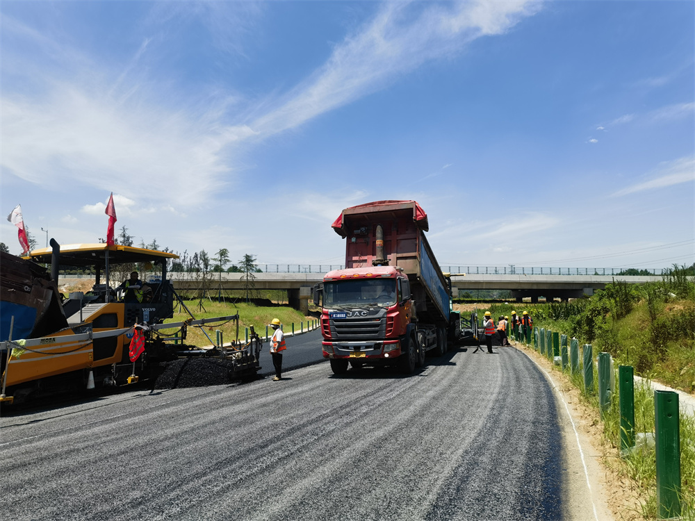 熱浪滾滾,潛山G105、S237改建工程項目正在進行的是K6+200-K7+500、K7+600-k8+500段中面層攤鋪施工。現(xiàn)場管理人員嚴守安全紅線,把握施工技術(shù)要點,全程盯控現(xiàn)場,按照既定節(jié)點目標持續(xù)沖刺。