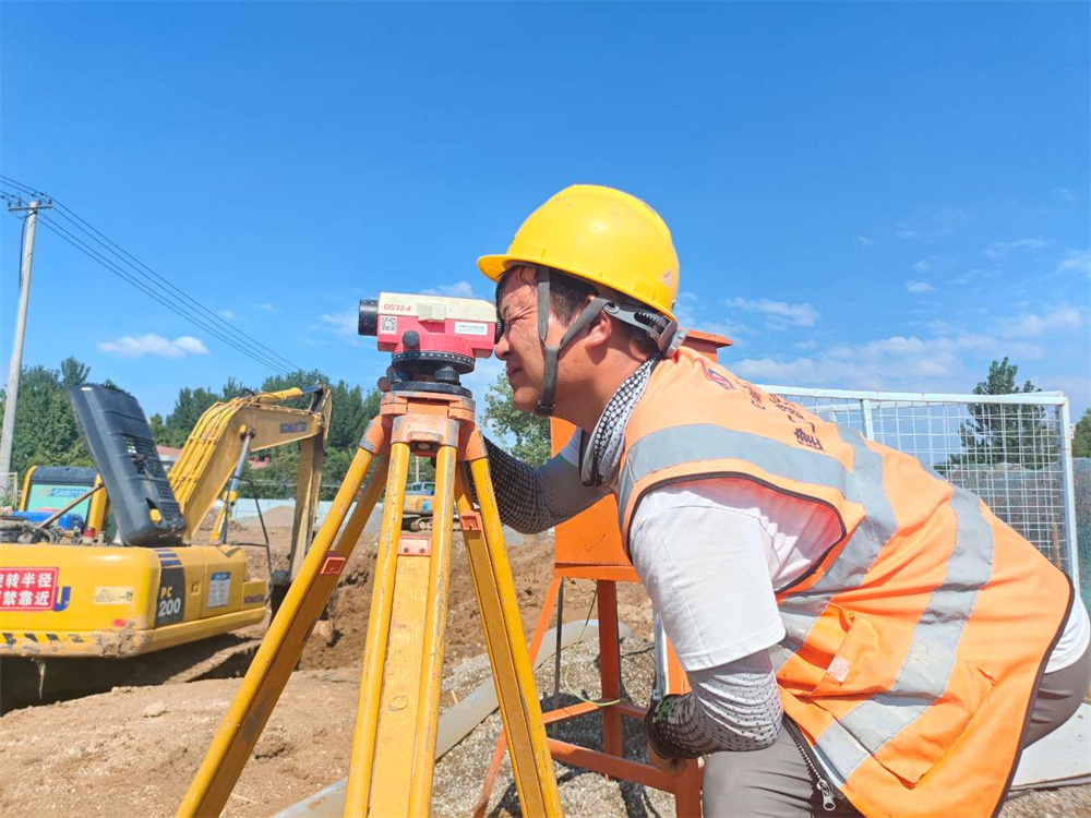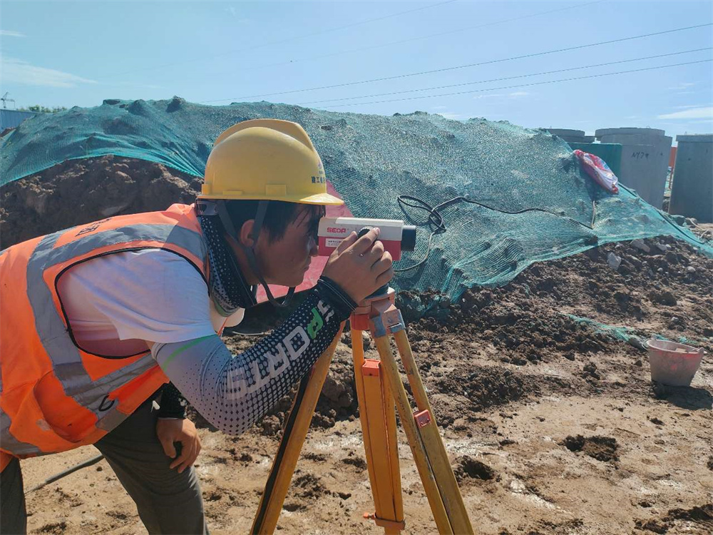 在淮北市高鐵西站綜合開發(fā)綜合開發(fā)項目創(chuàng)新大道路段,隨處可見忙碌的身影,施工員和建設(shè)工人們正在進行污水溝槽高程測量和雨水管井室溜槽砌筑等工作。