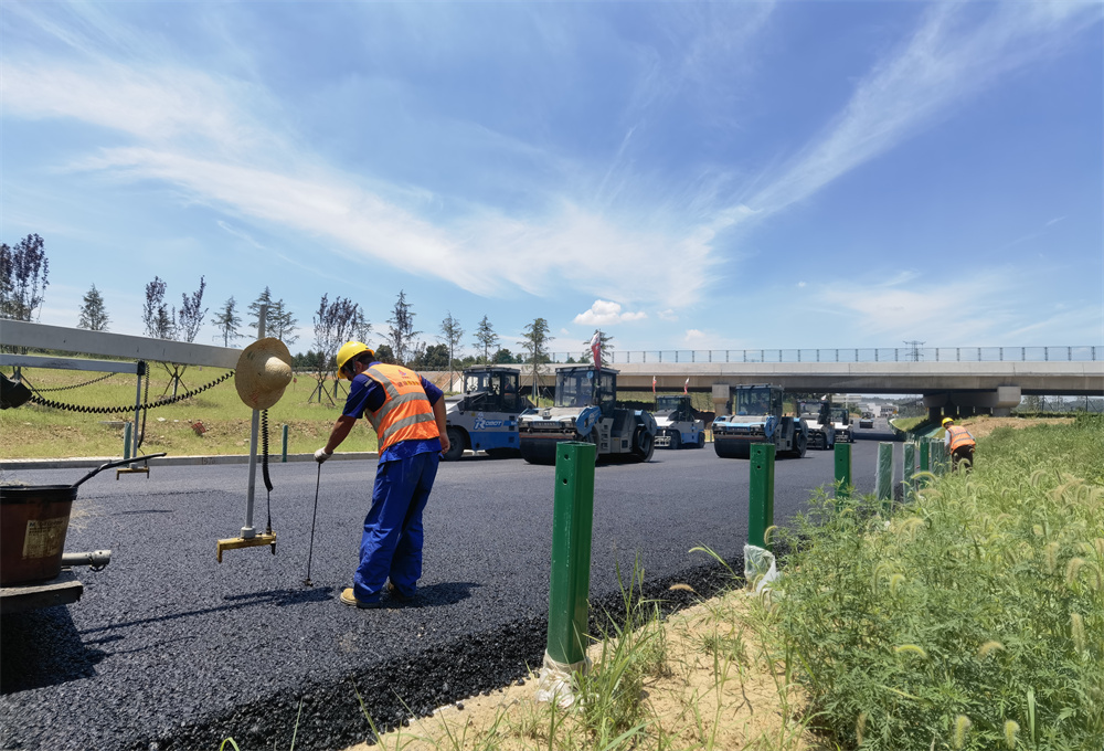 連日來,氣溫連續(xù)攀升,為按時保質(zhì)保量完成施工計劃,完成主線瀝青中面層攤鋪任務(wù),設(shè)備租賃公司宣涇高速01標操作人員不畏“烤”驗,面對超過140攝氏度的瀝青路面,通過手測松鋪,控制瀝青攤鋪厚度。
