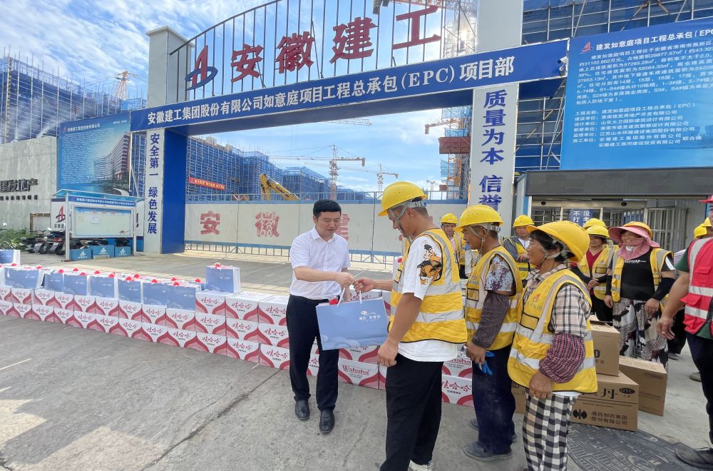 夏日炎炎送清涼,情系一線保安康。為貫徹落實集團開展施工安全生產(chǎn)集中整治工作要求,切實做好安全生產(chǎn)和勞動保護工作,連日來,公司黨委書記、總經(jīng)理傅宏林等班子成員帶隊分赴30余個項目督導(dǎo)檢查并開展“工會送清涼 防暑保安康”慰問活動。