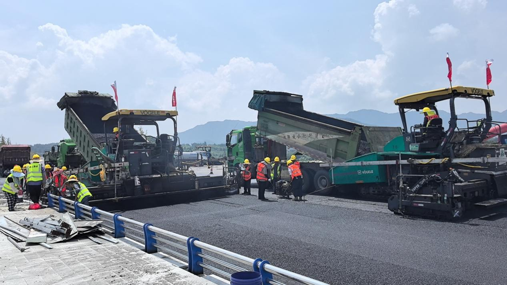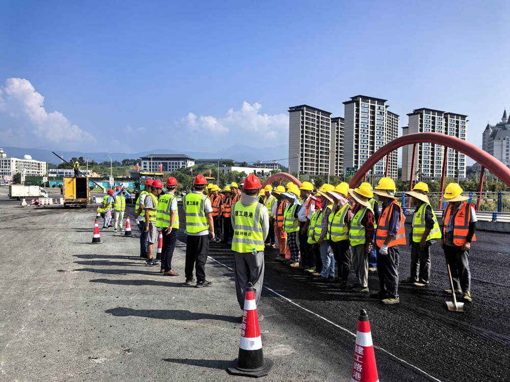 瀝青路面的上面層是整個(gè)瀝青路面攤鋪過(guò)程中質(zhì)量要求最高、施工工藝要求最嚴(yán)格的一道工序。項(xiàng)目公司督促各參建單位嚴(yán)格把控進(jìn)場(chǎng)原材質(zhì)量,選擇經(jīng)驗(yàn)豐富的作業(yè)班組,配備性能優(yōu)良的機(jī)械設(shè)備,優(yōu)化施工方案,科學(xué)組織施工,同時(shí)對(duì)現(xiàn)場(chǎng)技術(shù)管理人員、一線操作人員進(jìn)行了詳細(xì)的技術(shù)和安全交底,確保瀝青攤鋪?lái)樌M(jìn)行。