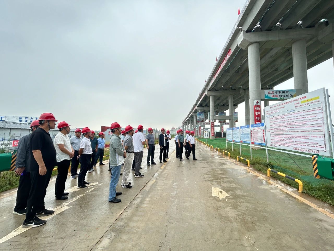 觀摩團(tuán)一行參觀了鋼箱梁架設(shè)施工、鋼箱梁頂推施工、現(xiàn)澆箱梁施工現(xiàn)場,并圍繞進(jìn)度質(zhì)量安全管理、施工工藝、項(xiàng)目黨建等進(jìn)行了深入交流。