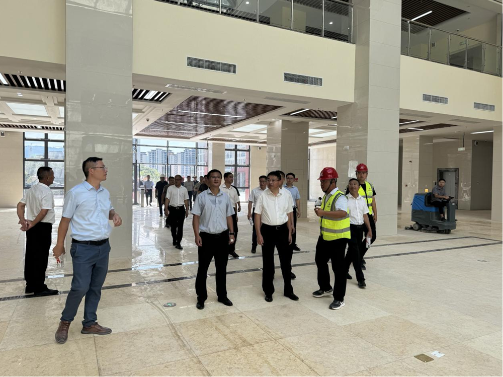 儀式結束后,領導和嘉賓們一同走進學校教學樓、圖書館、宿舍等場所,岳西項目公司及施工單位相關人員代表投資建設單位,詳細介紹了校園功能布局、配套設施、重點區(qū)域衛(wèi)生等情況。