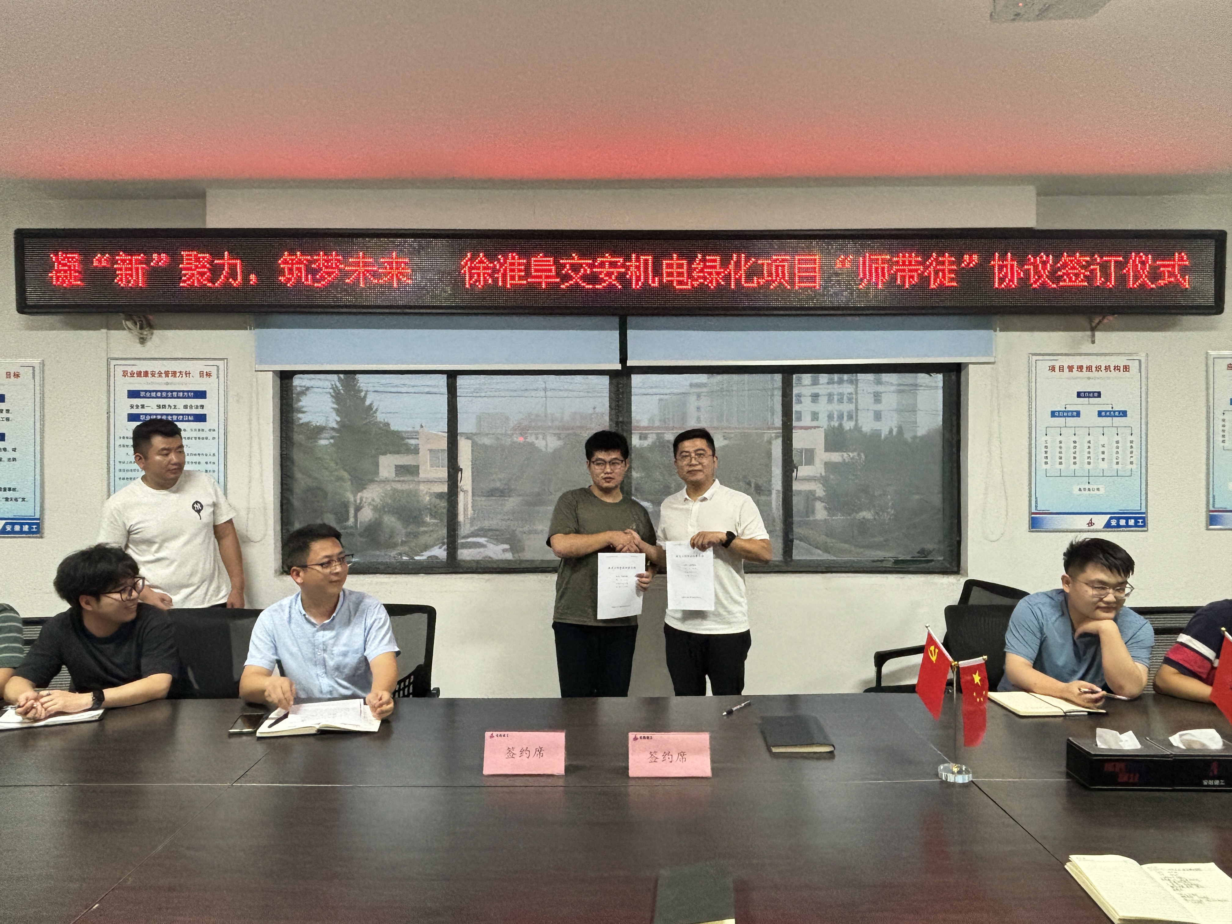 為幫助新員工深入了解公司發(fā)展戰(zhàn)略及經(jīng)營(yíng)模式,培養(yǎng)和樹(shù)立起良好的職業(yè)素養(yǎng),8月22日,建工二建徐淮阜交安機(jī)電綠化項(xiàng)目舉辦新員工座談會(huì)及“師帶徒”協(xié)議簽約儀式。