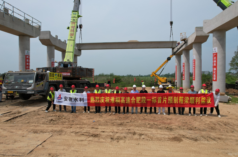 8月26日上午,安徽水利淮南至桐城高速公路合肥段1標(biāo)項(xiàng)目成功完成汽車(chē)吊架設(shè)首件箱梁任務(wù),項(xiàng)目即將步入橋梁上部結(jié)構(gòu)全面施工階段,為后續(xù)規(guī)?;芰菏┕さ於▓?jiān)實(shí)基礎(chǔ),也極大減輕了預(yù)制梁場(chǎng)存梁和預(yù)制生產(chǎn)的壓力。