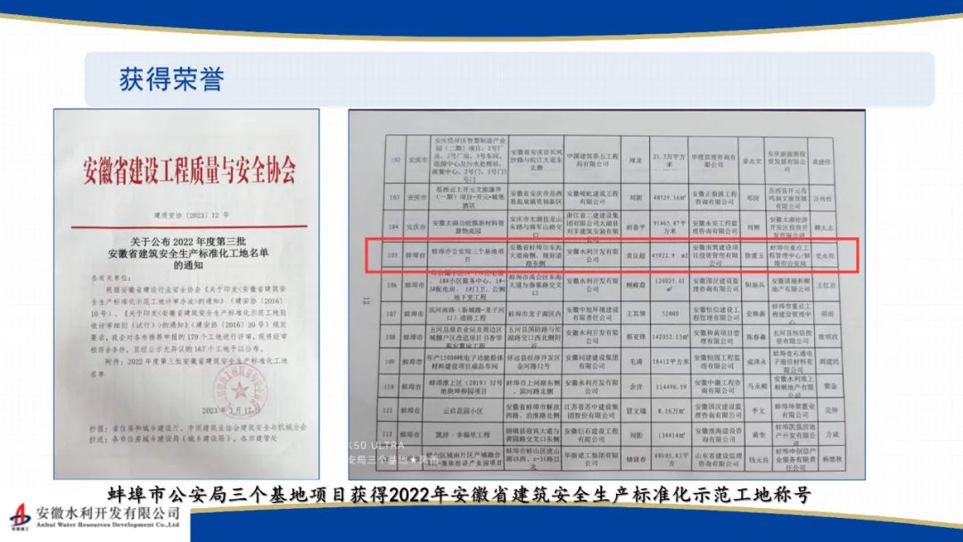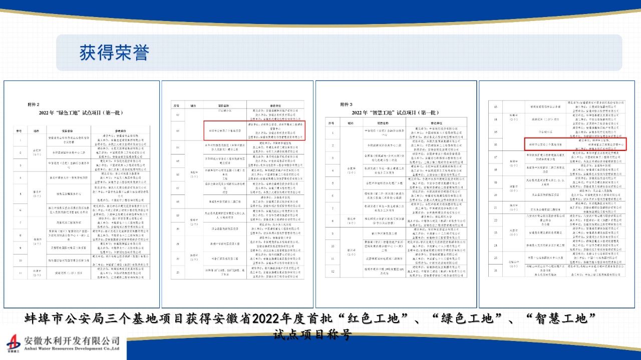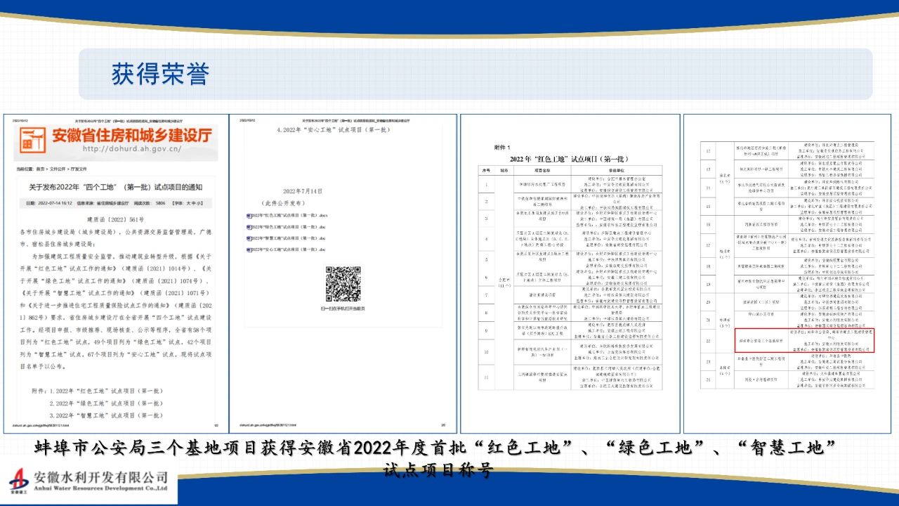 建設(shè)過程中,項(xiàng)目成功創(chuàng)建安徽省首批“智慧工地”“綠色工地”和“紅色工地”,先后榮獲集團(tuán)公司“勞動(dòng)競賽優(yōu)勝項(xiàng)目部”、蚌埠市“青年文明號(hào)”等榮譽(yù),并順利通過省級(jí)、市級(jí)、集團(tuán)級(jí)安全生產(chǎn)標(biāo)準(zhǔn)化示范工地和蚌埠市質(zhì)量標(biāo)準(zhǔn)化工地驗(yàn)收。