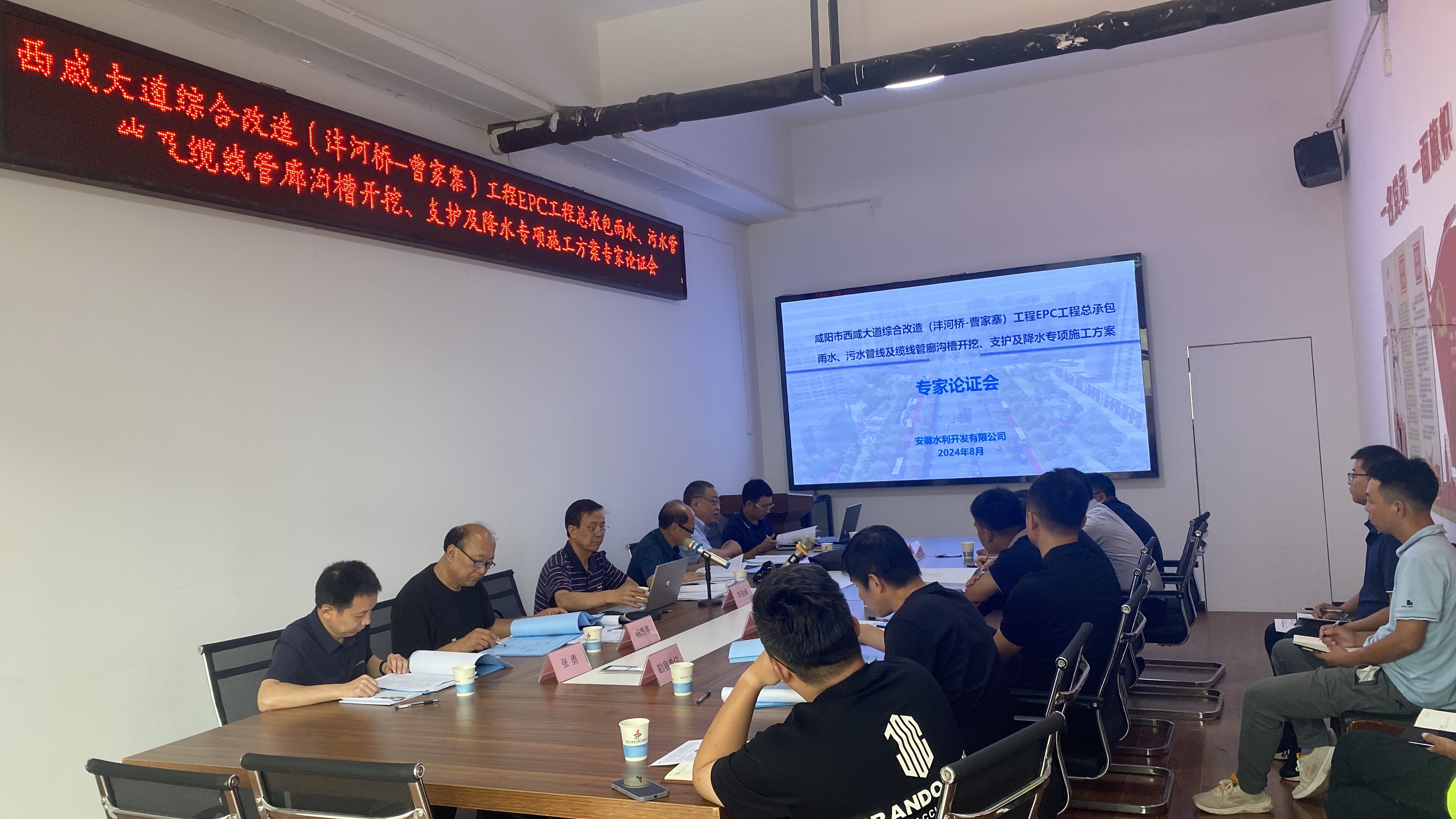 近日,安徽水利西咸大道項(xiàng)目組織召開了雨水、污水管線及纜線管廊溝槽開挖、支護(hù)及降水專項(xiàng)施工方案專家論證會,相關(guān)專家、建設(shè)單位、監(jiān)理單位以及項(xiàng)目部相關(guān)人員等近20人參會。