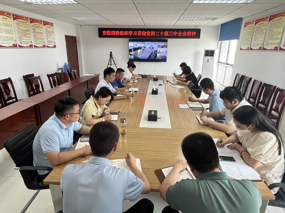 8月30日下午,安徽瑞特召開學習黨的二十屆三中全會精神專題會議,公司全體黨員、各部門負責人及青年職工參加。會議學習了《中共中央關(guān)于進一步全面深化改革、推進中國式現(xiàn)代化的決定》和《中國共產(chǎn)黨第二十屆中央委員會第三次全體會議公報》。